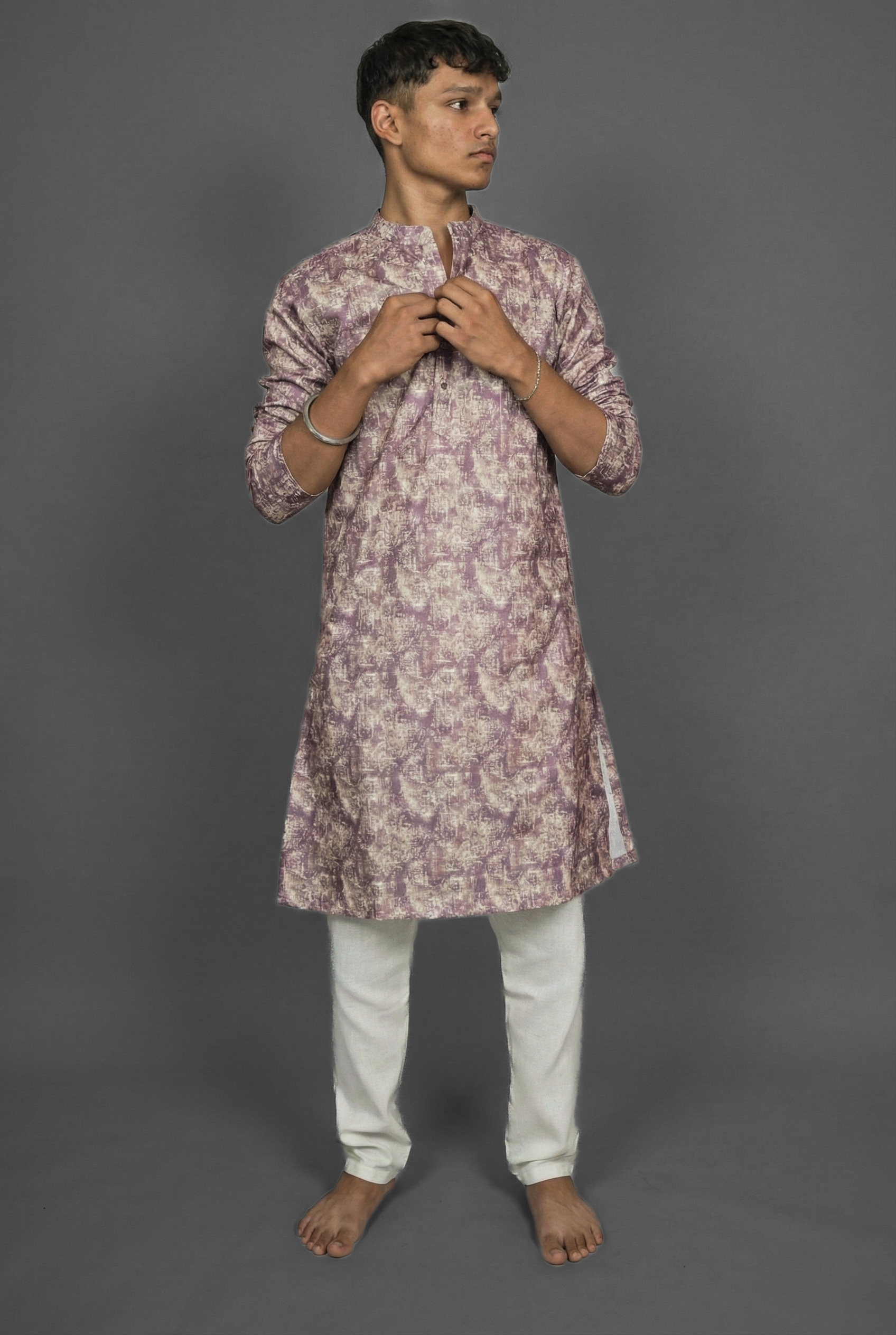 Ground your look in the timeless appeal of the Carved Wood Brown Kurta by Sajraah. This piece is inspired by the intricate beauty of traditional craftsmanship, featuring a rich, dark brown hue that mimics the depth of aged wood. It is an ideal pick for the gentleman who values substance and subtlety. The intense, earthy color provides a strong, masculine foundation, while the design details suggest a level of sophistication usually found in bespoke tailoring.