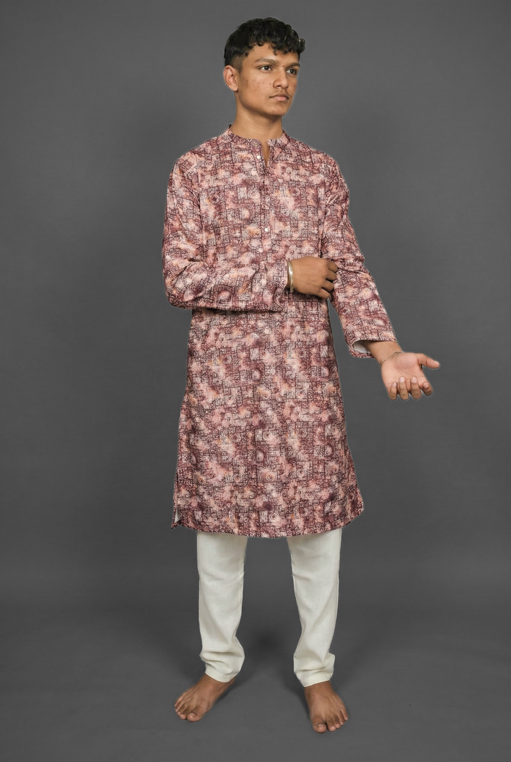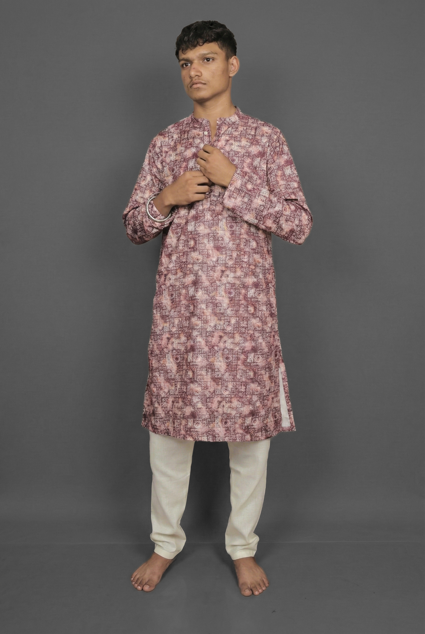 Ignite your ethnic style with the Crimson Blur Maroon Kurta by Sajraah. This piece takes the traditional boldness of crimson maroon and gives it a modern twist with a “blur” visual effect. The design creates a sense of movement and depth, moving away from flat solid colors to offer something truly dynamic. It is the ideal choice for the man who is confident and forward-thinking, perfect for evening parties or festive occasions where you want to make a memorable, stylish impact.