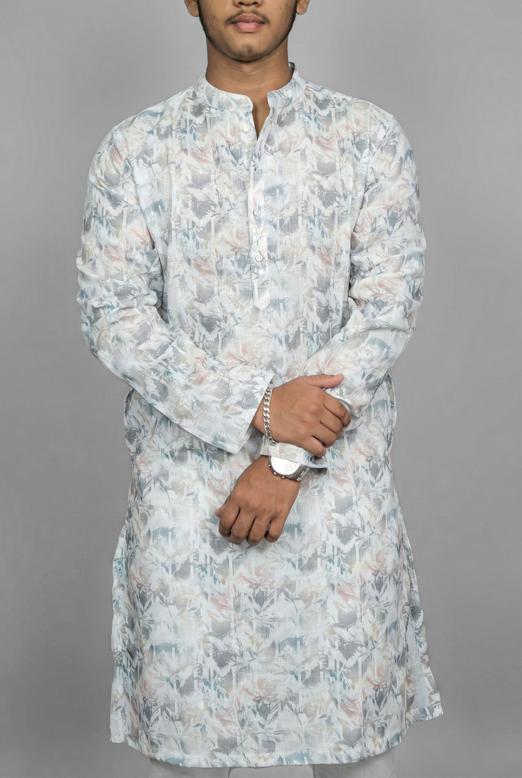Stay ahead of the curve with the Modern Wave Grey Kurta by Sajraah. Grey is the color of the modern urbanite, and this kurta brings it to life with a dynamic “Wave” pattern. The fluid lines create a sense of motion, breaking the rigidity of traditional ethnic wear. It is the perfect fusion of contemporary design and traditional silhouette, ideal for office parties, cocktail nights, or the man who prefers a sleek, monochromatic aesthetic.