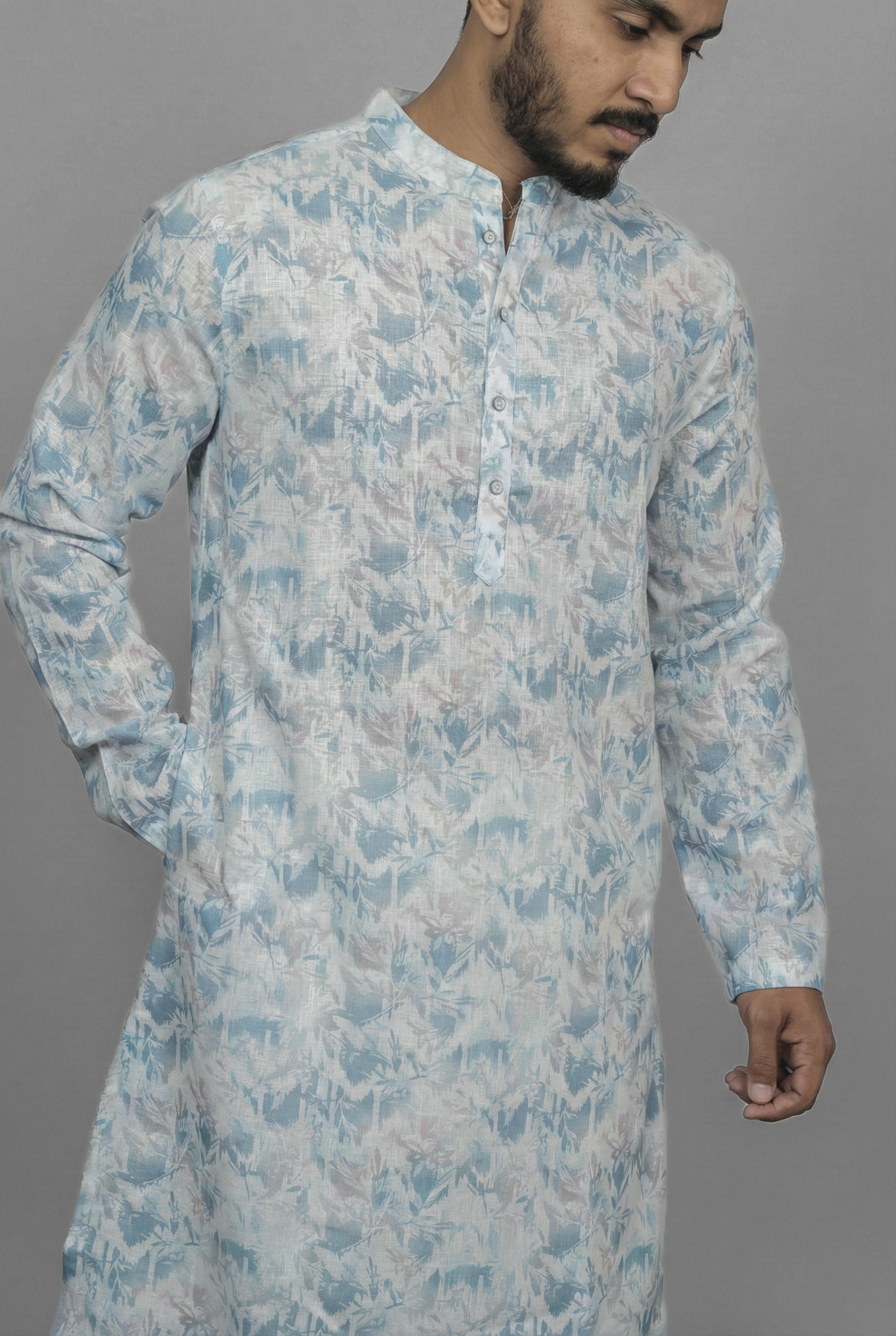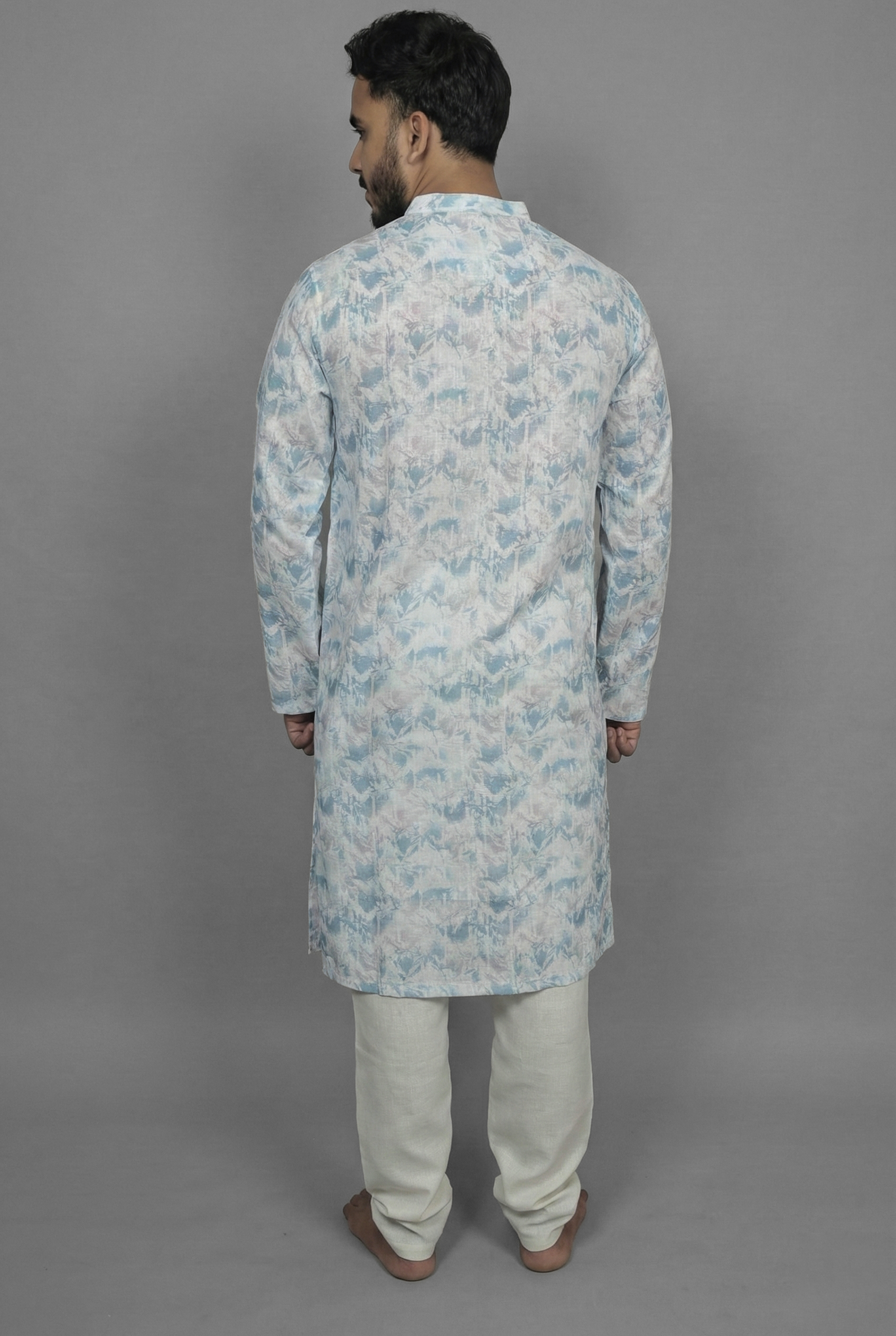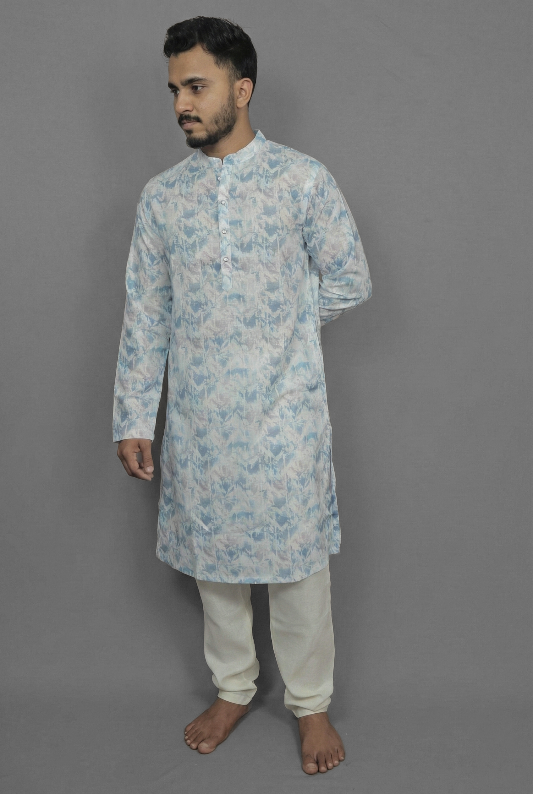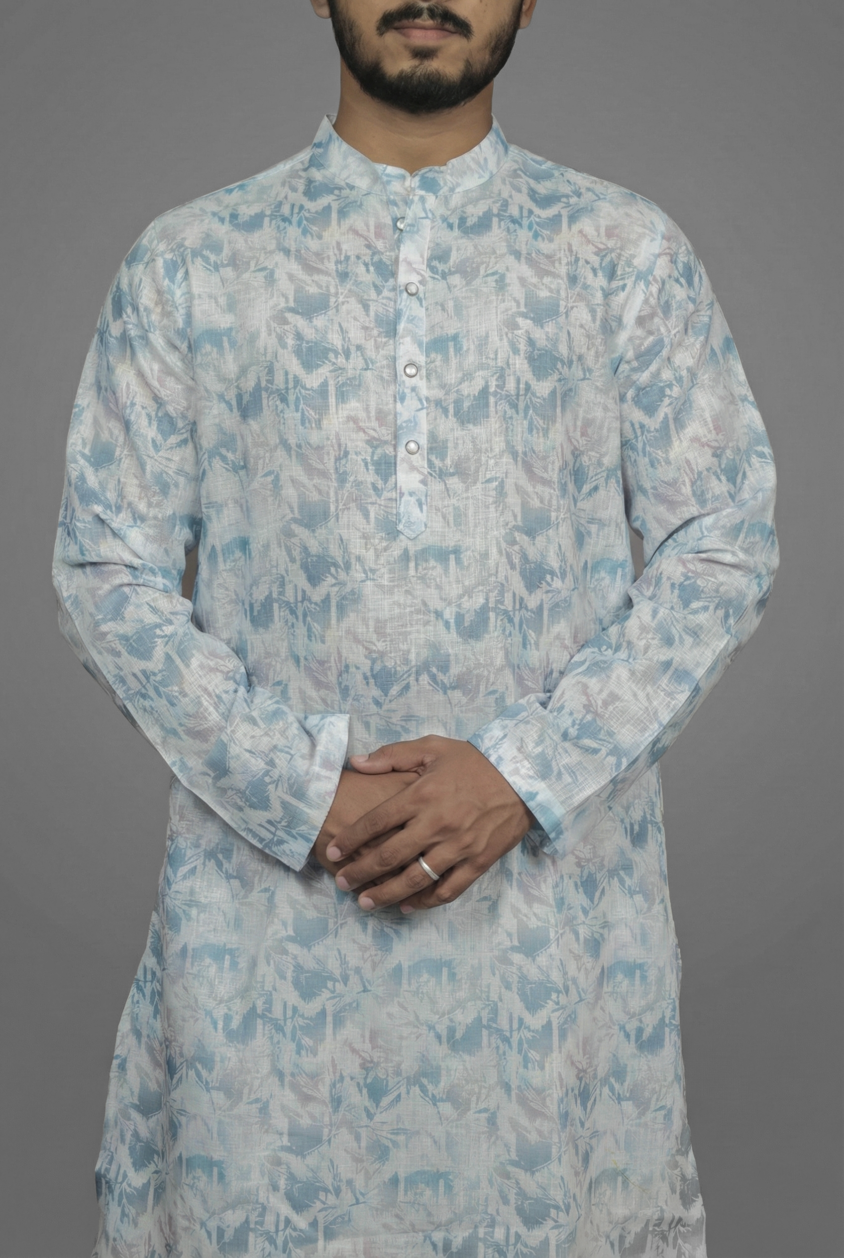 Sharpen your ethnic wardrobe with the Sapphire Edge Blue Kurta by Sajraah. This piece is defined by its intense sapphire hue—a color that signifies wisdom, royalty, and depth. True to its name, the design features a clean, “edged” aesthetic, offering a crisp and structured silhouette that sets it apart from softer, more relaxed styles. It is the ultimate power dressing option for the man who wants to look authoritative yet culturally rooted at formal events or evening celebrations.